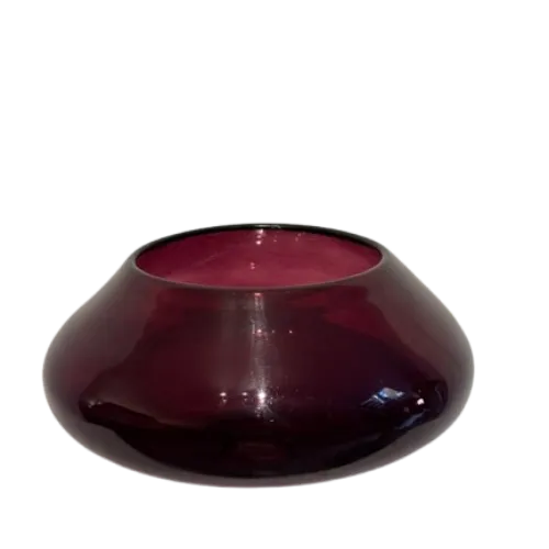 El diseño de Halo apuesta por la pureza de la forma y la belleza del vidrio trabajado a mano. Su contorno suavemente abombado y la continuidad uniforme de su acabado revelan el dominio técnico necesario para lograr piezas de gran diámetro con paredes delicadas y proporciones perfectamente controladas. Cada pequeña variación visible en su interior o en su base central es evidencia del proceso vivo del soplado, donde el material adopta su forma final a partir del movimiento y la respiración del artesano.